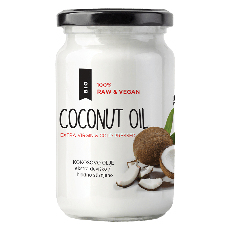 Aceite de coco virgen extra prensado en frío de máxima calidad, utilizado como alternativa a los aceites vegetales convencionales.