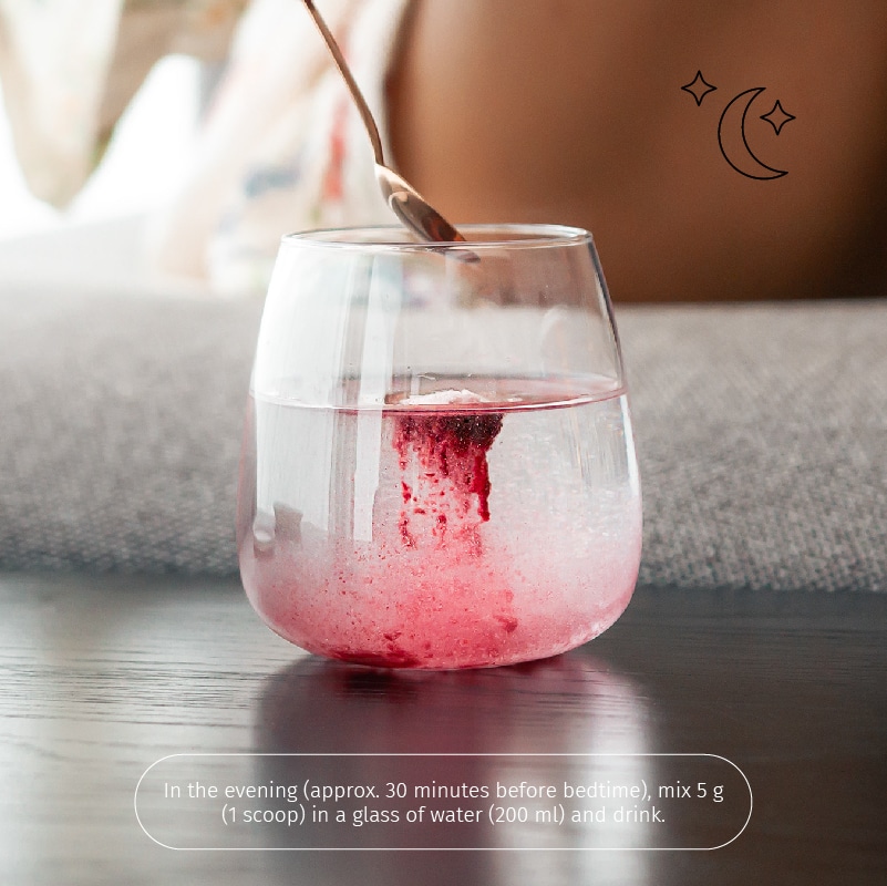 Ingredientes: almidón de tapioca, edulcorante eritritol, Morosil® (naranja roja (Citrus sinensis (L.) Osbeck)), aroma de naranja (3%), estabilizante: celulosa, L-carnitina, extracto de vino tinto (Vitis vinifera), extracto de valeriana (Valeriana officinalis) L.), edulcorante glucósido de esteviol.