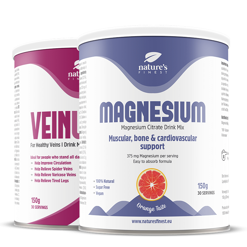 Magnesio: Citrato de magnesio, maltodextrina, eritritol, aroma natural de naranja (2,5%), aroma natural de limón (2,5%), estabilizador: polvo de celulosa, glucósidos de esteviol, naranja en polvo (0,1%) – complemento alimenticio.